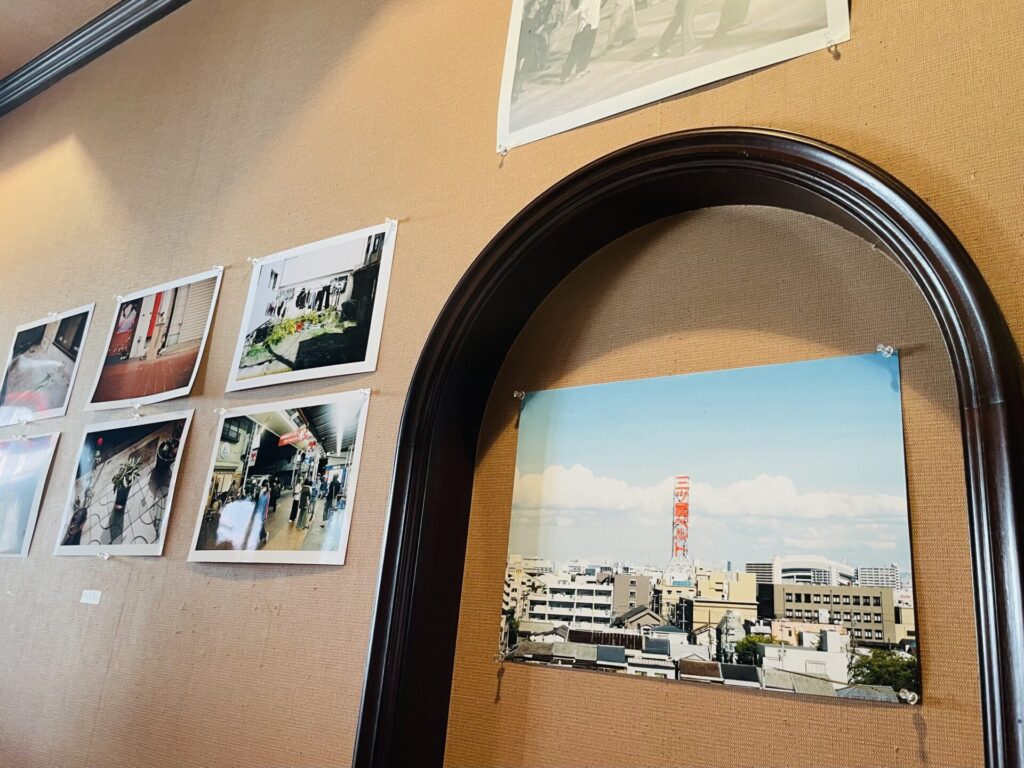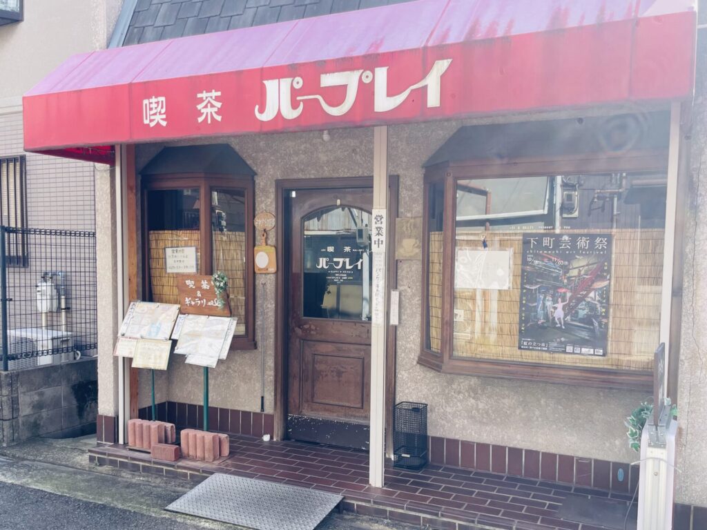 最初の紹介はこちら、喫茶パープレイさん。レトロな外観と、イラスト付きの手書きメニューが目を引く外観をしています。この喫茶店も下町芸術祭の展示会場となっており、今回の展示では、下町で暮らす多世代の写真家さんが撮影した、長田の写真が展示されていました。
