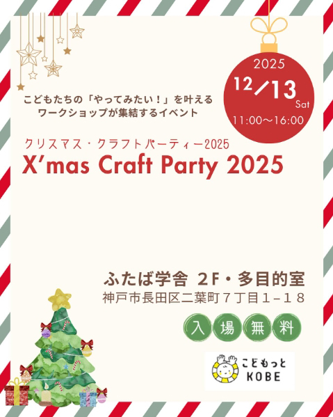こどもたちの「やってみたい!」を叶えるワークショップが集結するイベント 今回のテーマは「クリスマス」! こどもも大人も親子でも一緒に楽しめるクリスマスワークショップです☆