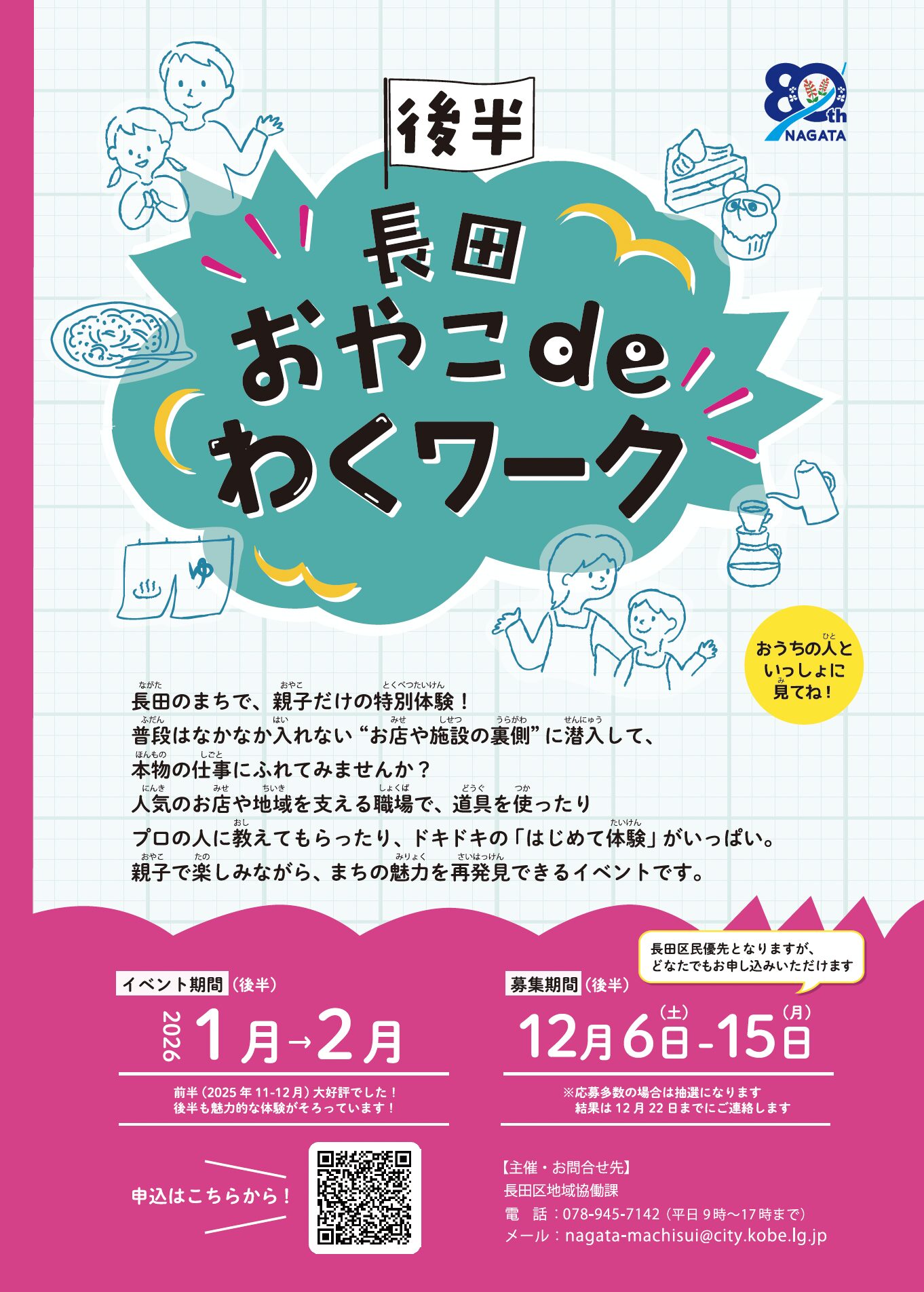区制80周年を記念し、歴史ある産業や食文化を親子で体験できるイベント「長田おやこdeわくワーク」を開催しています。