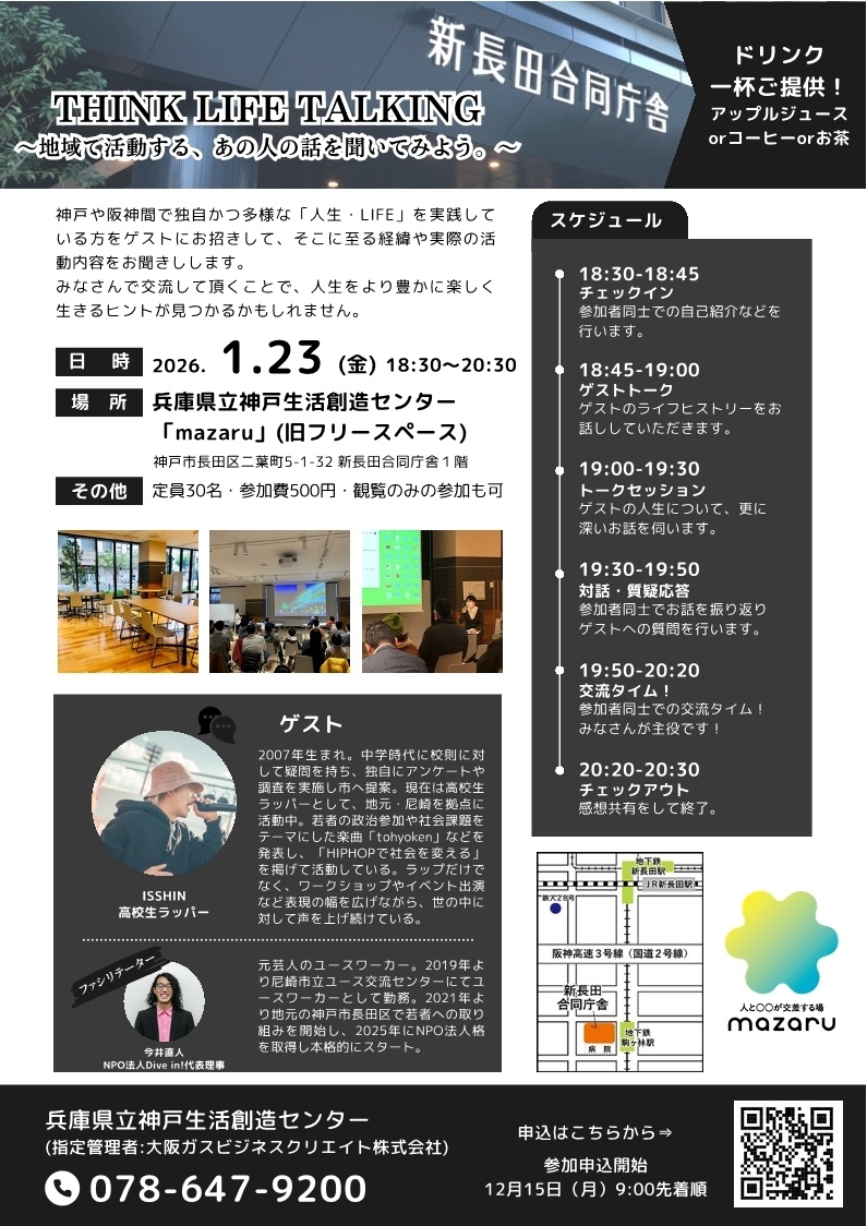 神戸や阪神間で独自かつ多様な「人生・LIFE」を実践している方をゲストにお招きして、そこに至る経緯や実際の活動内容をお聞きします。