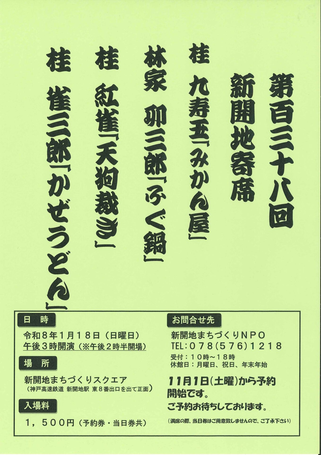 新年1月18日(日) 第138回新開地寄席を開催いたします。