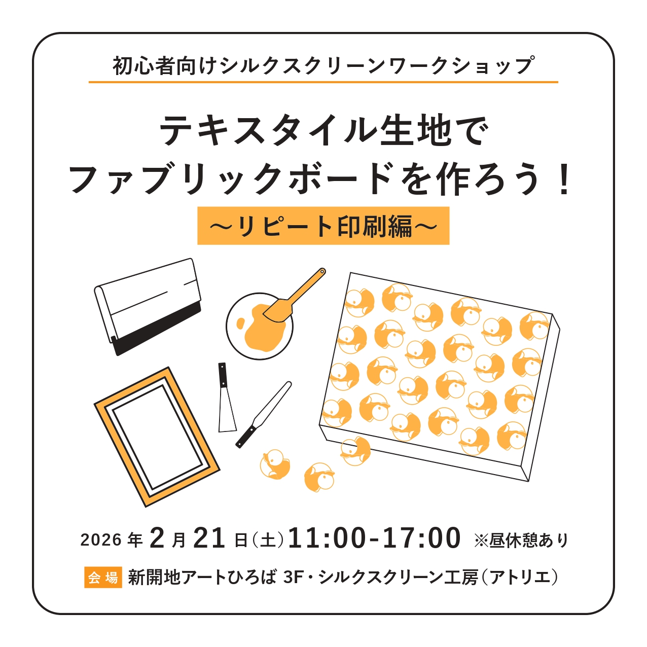 日時:2026年2月21日(土)11:00~17:00 ※受付は10:45~ ※お昼休憩あり(1時間)