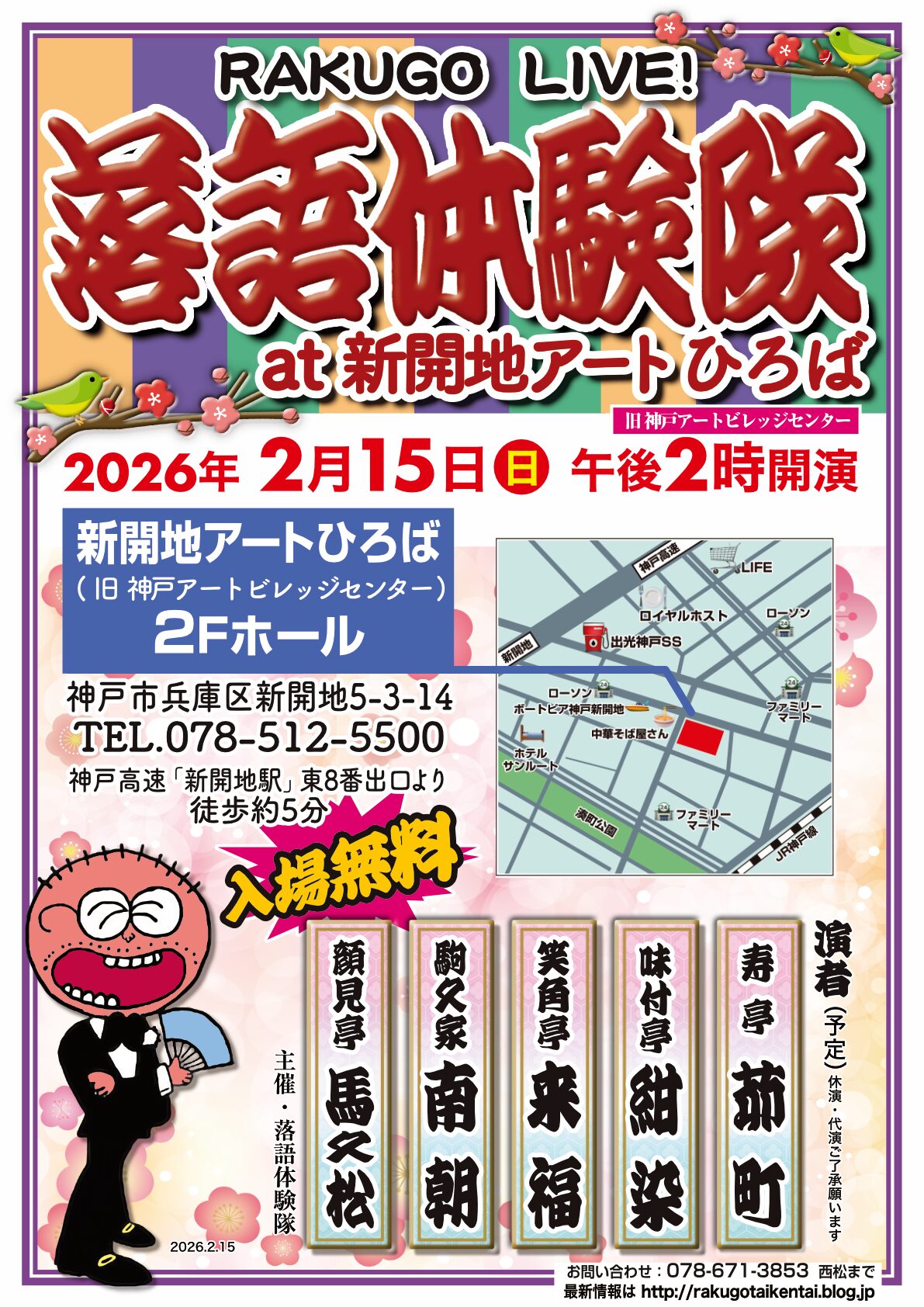 落語体験隊 TEL : 078‐671-3853(ニシマツ)