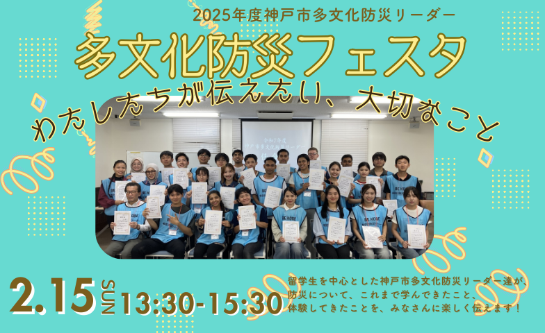 留学生を中心とした神戸市多文化防災リーダー達が防災について学んだこと、体験したことをみなさんに伝えます。