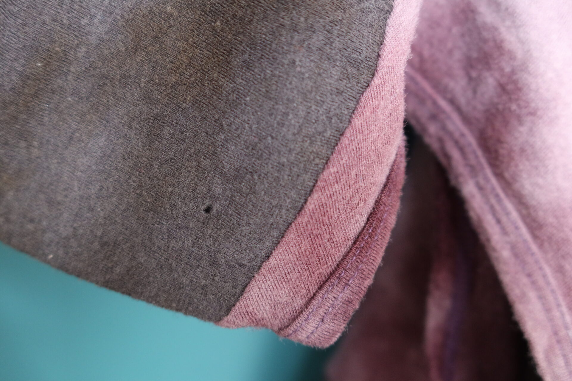 生地が薄くなった部分は、細かい並縫いを重ねるだけ。糸の処理も雑でかまいません。表に玉結びが見えていてもいいし、切りっぱなしでもなんとかなります。
