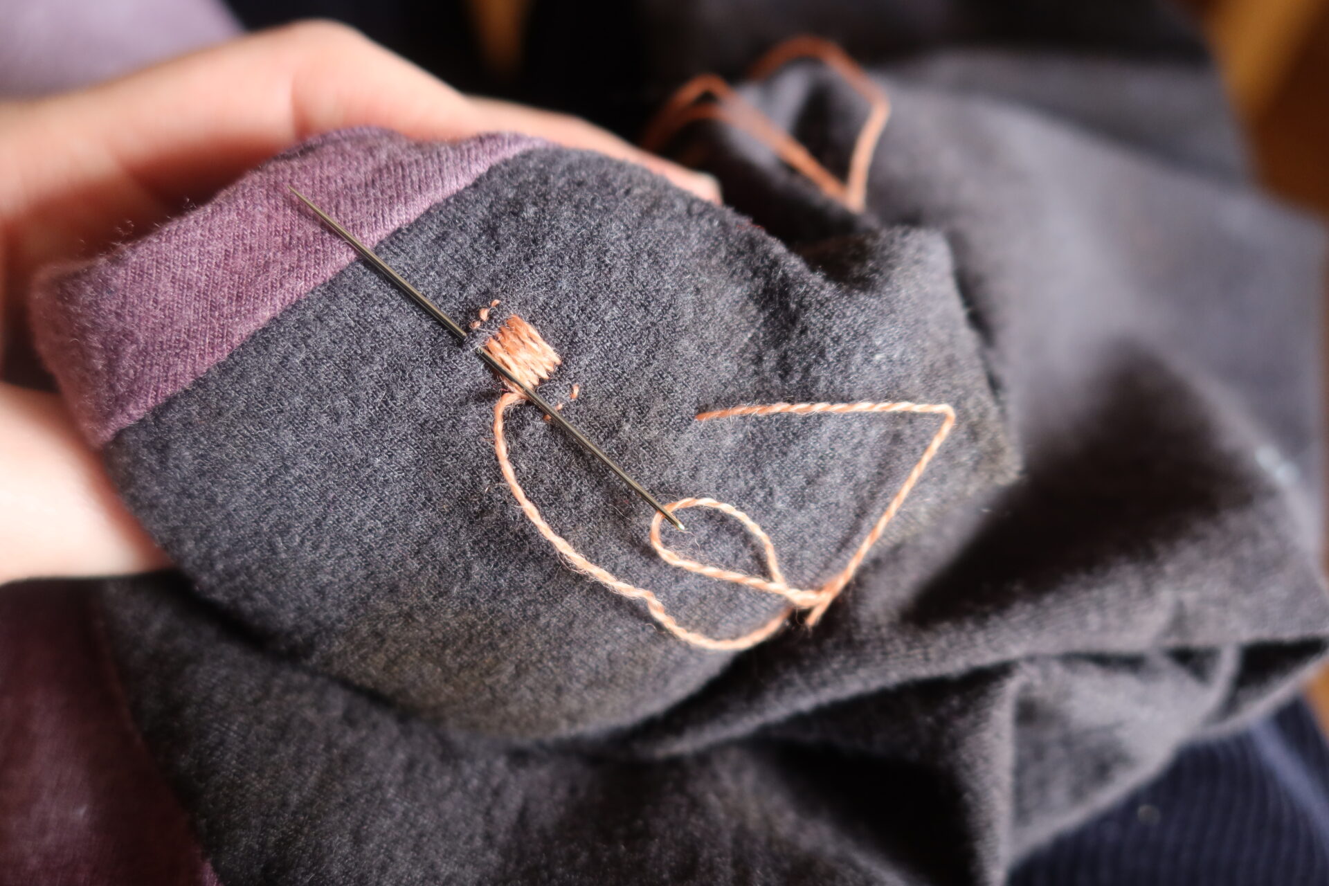 (ダーニング:穴があいたり擦り切れた衣服などを糸で繕う、ヨーロッパの伝統的な修繕方法です。)