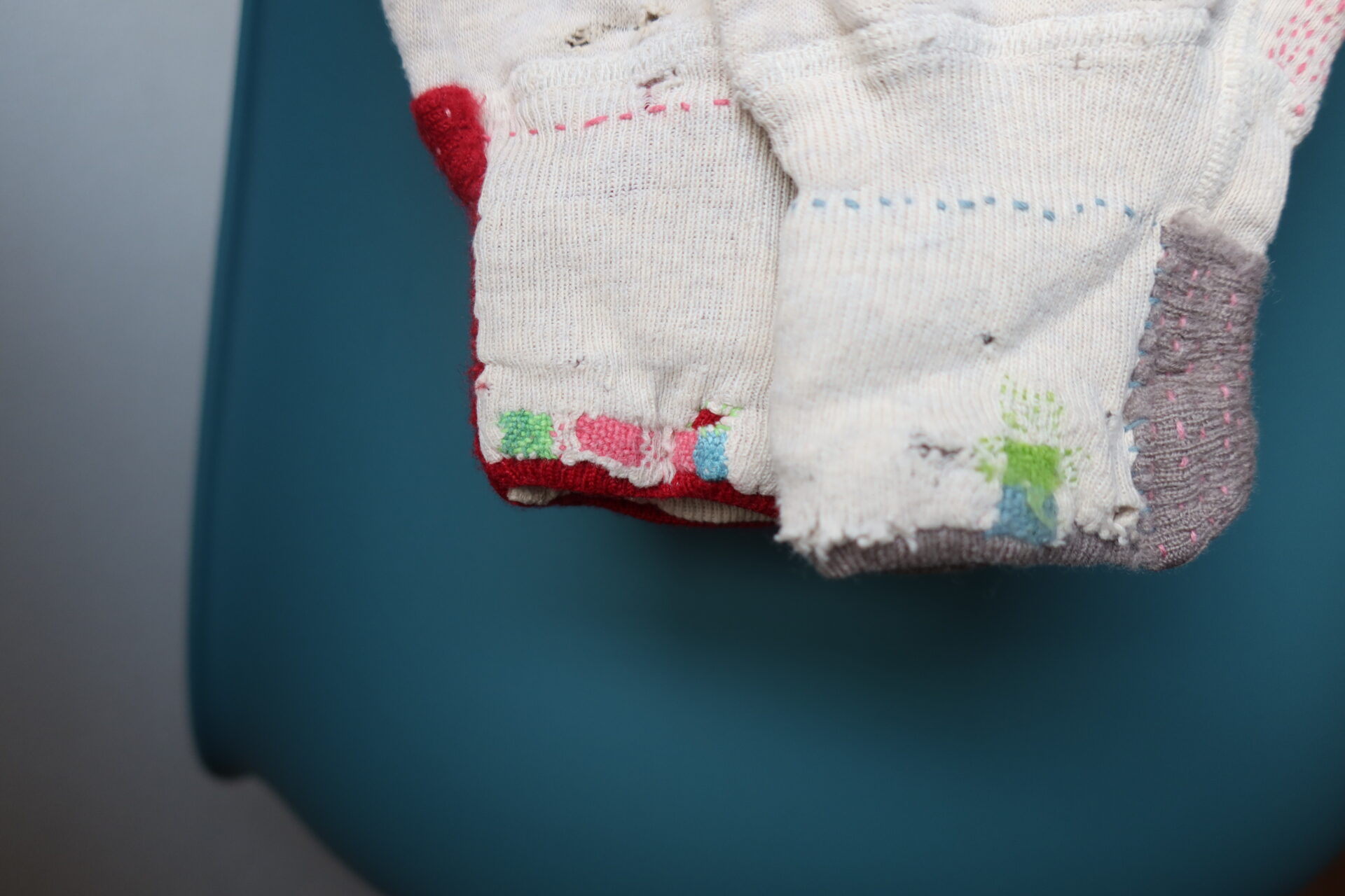 そんなふうに直した服が、明日急に着たくなります。「もう着られない」と思っていた服が、「コーディネートのメイン」に変わるのがこの作業の面白いところ。踵が出ていた靴下も、みんなに見せたくなるほどです。