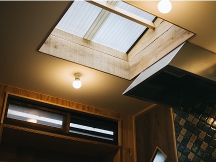 窓の無い部屋だったので、壁と天井に漆喰素材を使用。床は畳から無垢のフローリングに。明るくなっただけでなく、長屋共通の課題である湿気対策にもなっている。