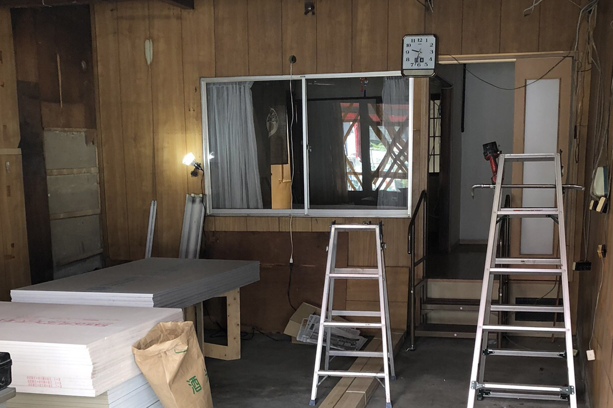 年配の方や子連れの家族が過ごしやすいように、元々あった奥の部屋のフローリングを残した状態で客席として開放。階段下の押し入れだった部分は倉庫にする案もあったが、空間を広く取るためにこちらも客席にした。
