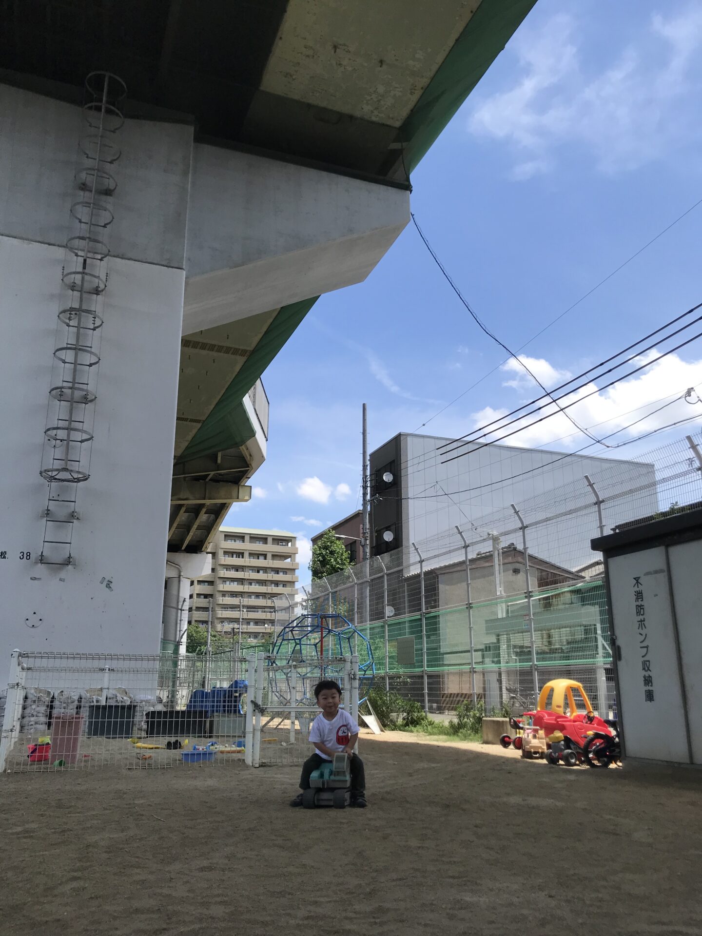 当時2歳の子が、高架下の鍵の付いた高いフェンスに囲まれた公園で遊んだ記憶が蘇る。