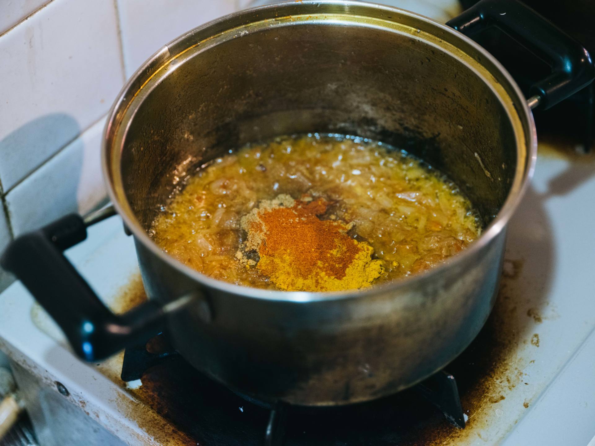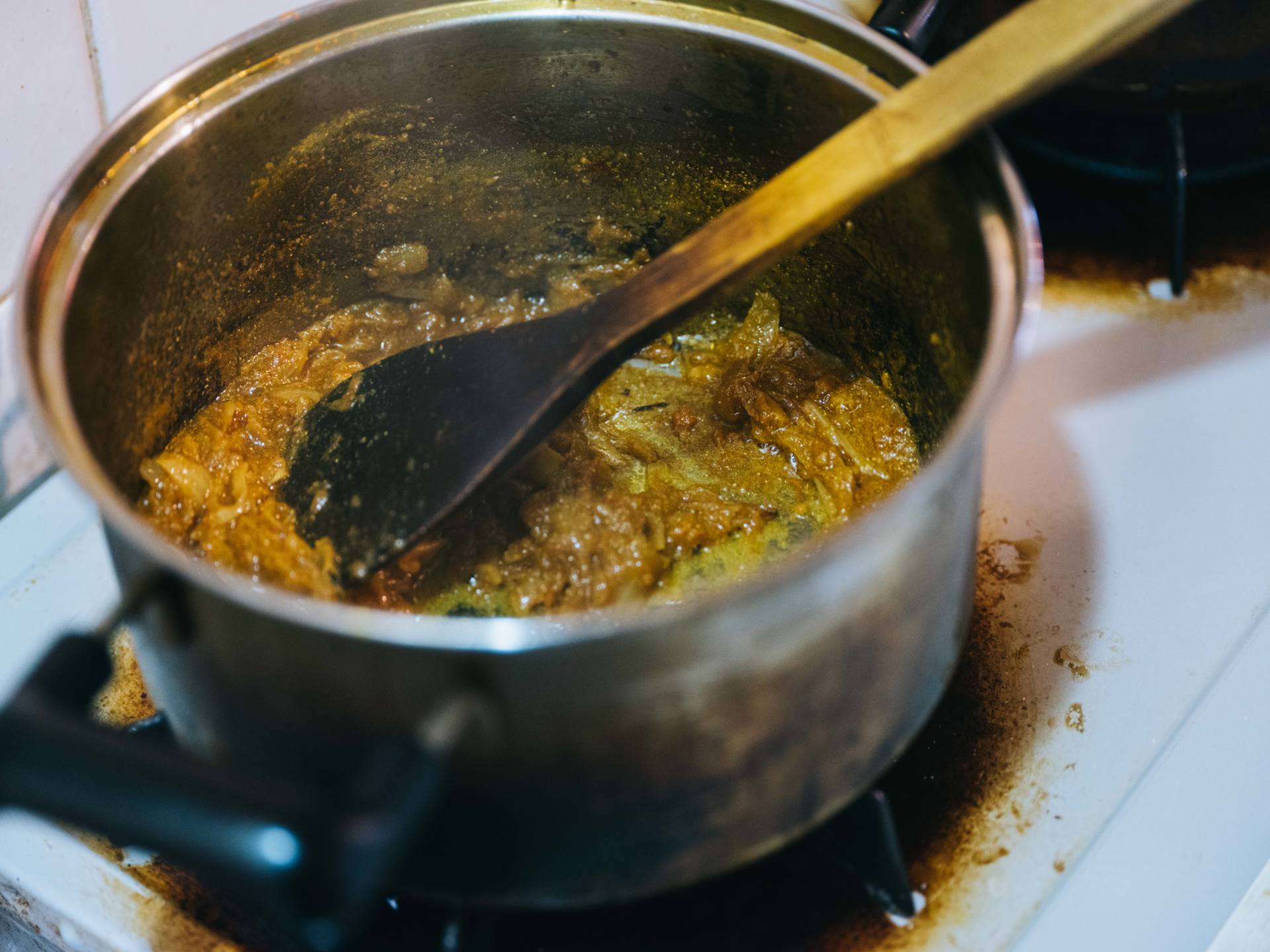 玉ねぎを長く炒めると、旨味が強くなります。スパイスの風味を活かしたい場合は、玉ねぎの端の方が茶色くなったタイミングで止めるのがオススメ。