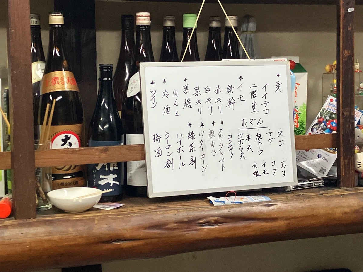 店内にはあちこちにその時代を見守ってきた逸品が飾られており、常連さんが腰かけるカウンターの角などにもその歴史が感じられる。焼酎や日本酒の一升瓶が並んだ棚を眺めているだけで、古き佳き昭和へとタイムスリップしたような気持ちになれる名店だ。