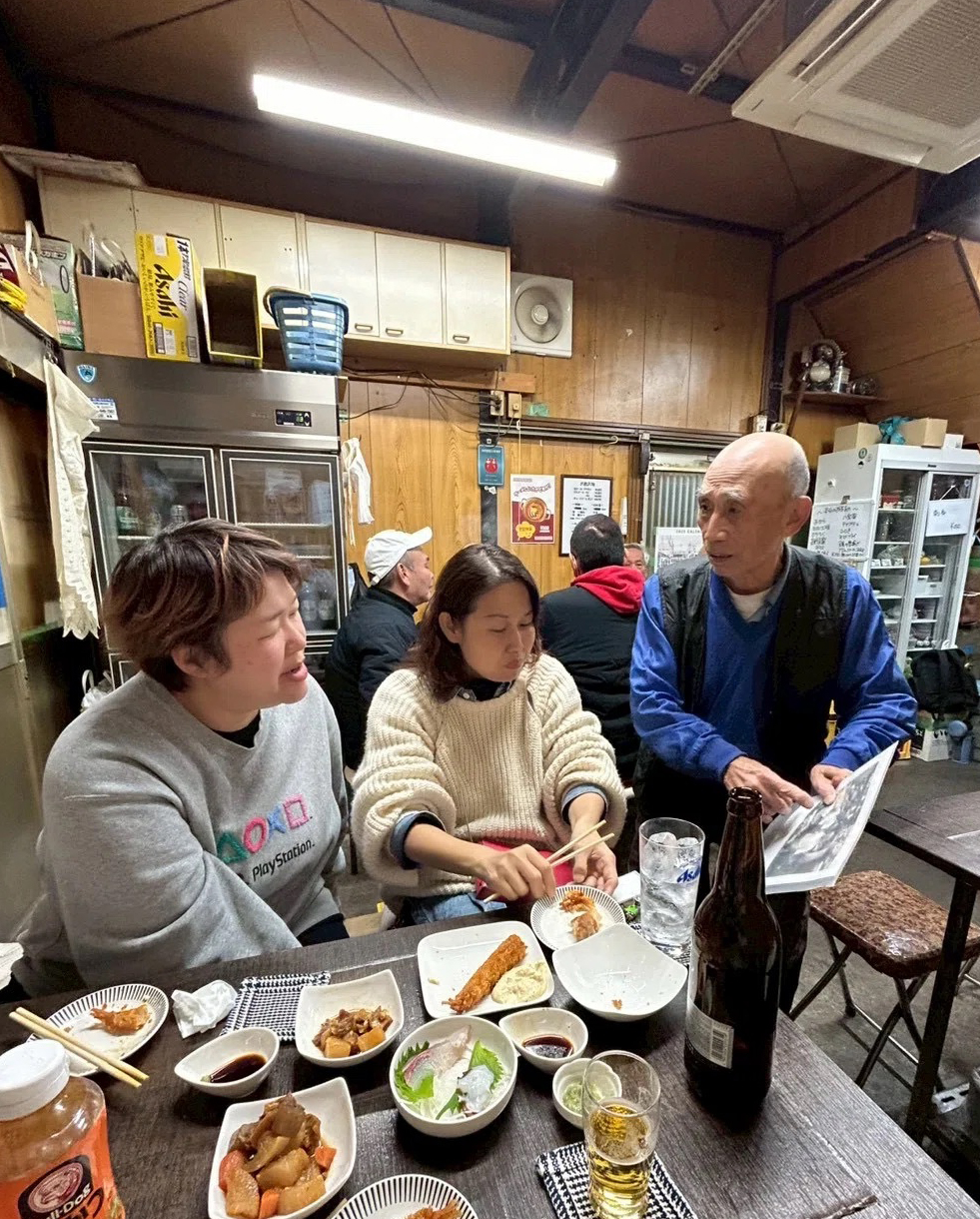 『山口酒店』は古くからここで店を構えてきた人気の角打ち。2025年にリニューアルし、メニューもバージョンアップしたため、いつ行ってもたいてい満席で、17時のオープンとともに続々と常連さんがやってくる。おかあさんの美味しいお料理に、昔ながらの酒屋価格のお酒がついついすすんで、来る人みんながえびす顔になってしまう素敵なお店。