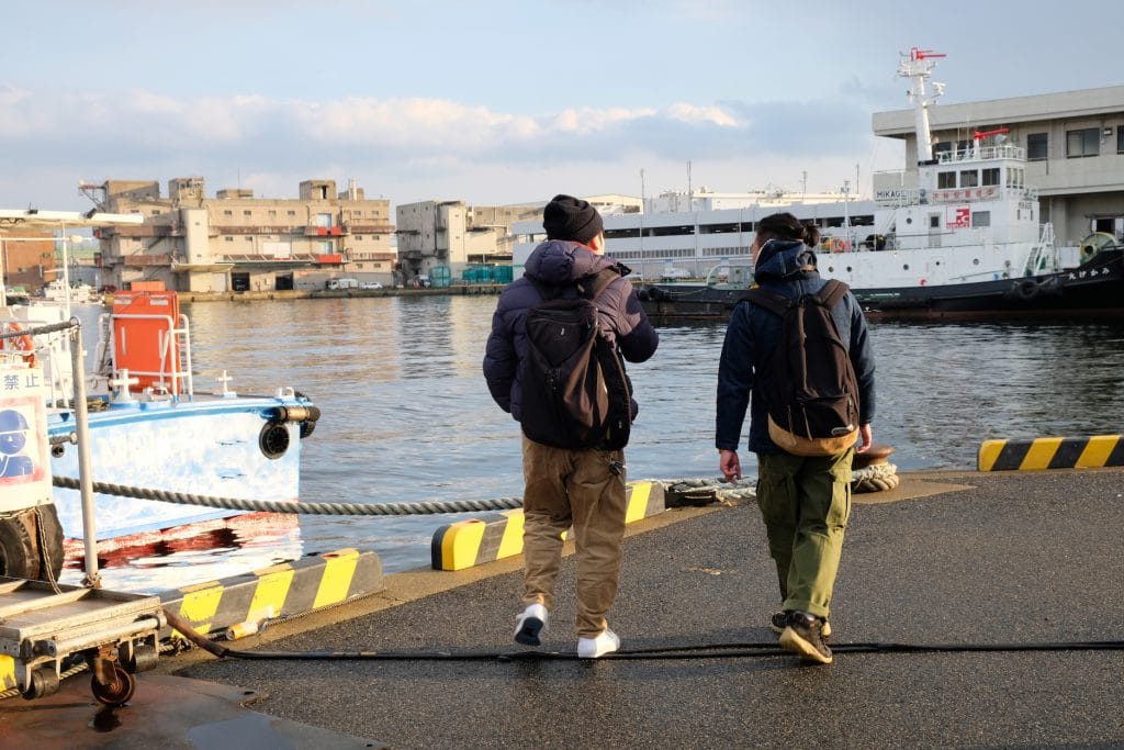 兵庫港を後にして、つぎに2人が向かったのは中央市場の北側。早速何か発見しています。