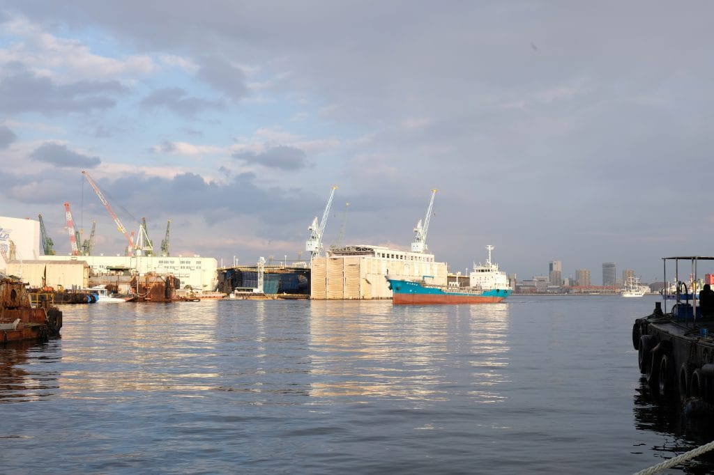 さて、この防潮堤を舐めるように歩くと港が開けてきました。兵庫埠頭をぐるっと囲む港です。