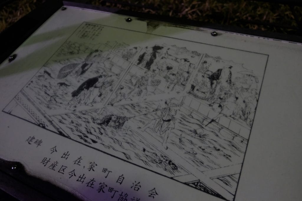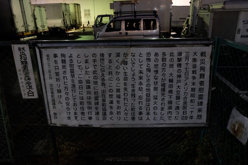 再び南に向かって歩く、前畑氏の案内で近代の優美な3連アーチ橋「大輪田橋」のたもとに降りる。この橋の下で、戦時中B29によって多数の被爆死があったそうだ。光もあれば暗い過去もある。そしてこのまちは古代〜現代まであらゆる時代の層が重なりなって形づくられているのだ。
