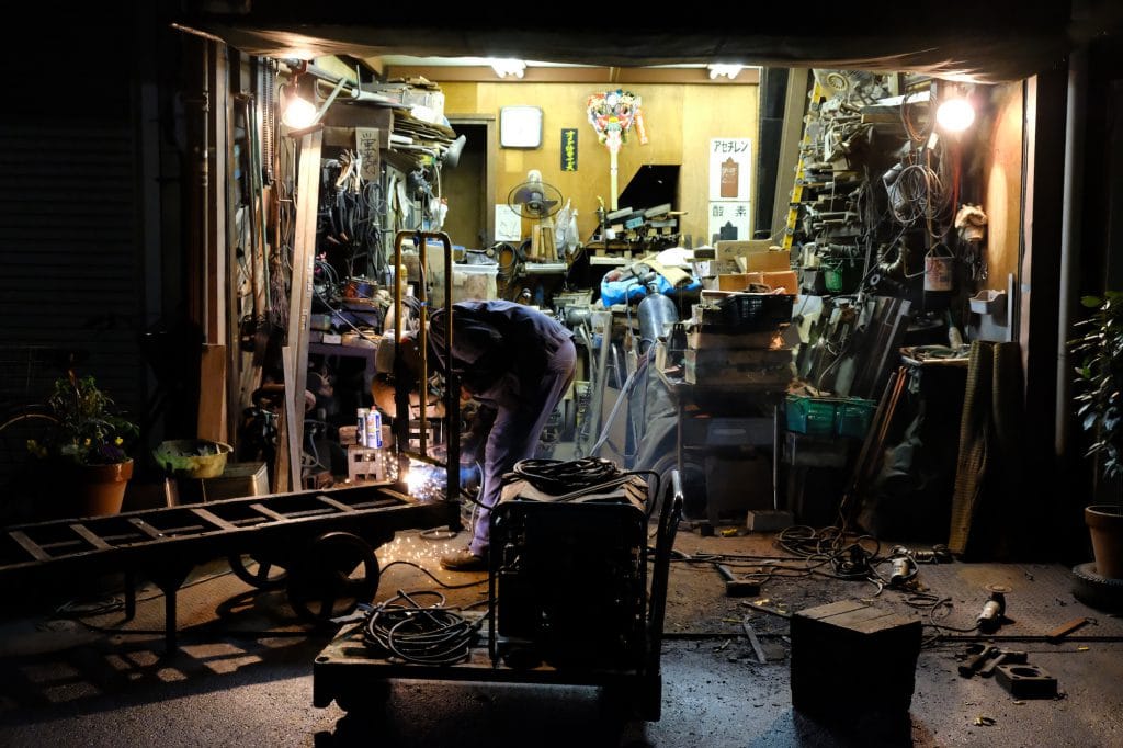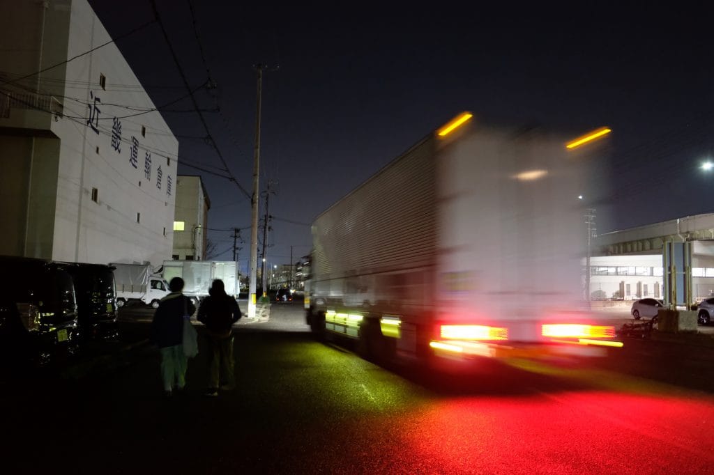 長距離トラックのはしる横を通り抜け、ターレーやネコ車を修理する町工場をすりぬけ、僕たちは家路に向かう。古くからの痕跡が未だに残り続ける運河周辺の町。とにかくこのまちは、現在もなお「この町らしさ」を刻み続けているのだった。