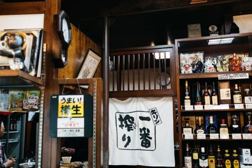 店内には美味しいお酒とつまみ、朗らかな店主夫婦と常連客たちの笑い声、絶え間なく流れるテレビの音に溢れている。彼のひげ面の風貌と明らかに常人離れした大きなカメラは、最初から胡散臭く思われたらしい。いかにも人の垣根のない下町らしく、常連客が気楽に彼をいじってくる。店主からは、酒屋で出す酒は1合1斥なので、200ml入りのコップを使うが、最近はこれが品薄で180ml入りコップを皿の上に置き、少し溢れさせて客に出す店もある、なんて話も聞かせてもらった。
