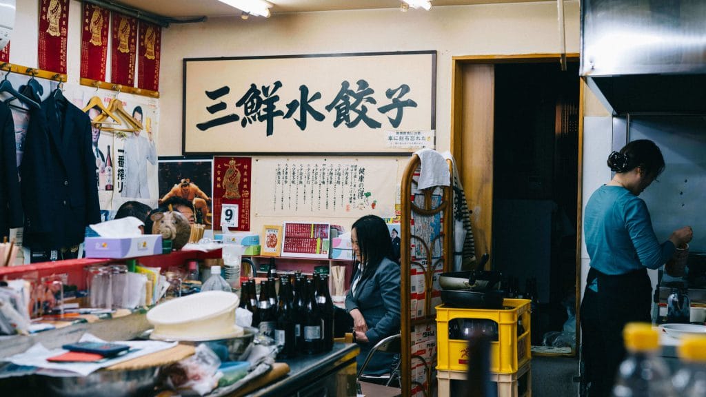 名物の手作り水餃子をオーダーし、ビールをちびちびしながらお店のことを教えてもらう。頭の中はすでに水餃子でうずうず。看板メニューはどれもお手頃な価格ばかりで驚かされる。奥では仕事帰りの上司部下たちが和やかにテーブルを囲み、手前のカウンターではカップルがしっとりと箸を進めている。皆さん行きつけなのだろう。