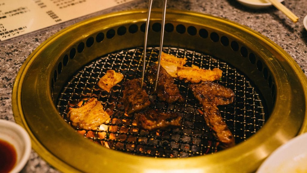 焼肉をいくつかと、マッコリをオーダーすると、水色の鶴の絵が描かれた大きな壺いっぱいに入ったマッコリがやってきた。2度目の乾杯。んー!このマッコリ。今まで飲んだ中でいちばん美味しいかも。少し甘ったるさのあるマッコリが、これは微発泡さもあって爽やかなのにコクもある。これはハマっちゃう。グイグイいけてしまうよ、と思わず顔がにやけてご満悦。