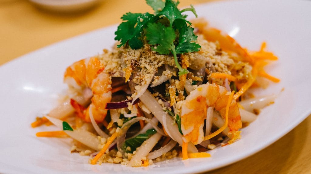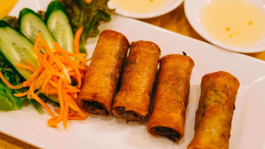 三軒目はベトナム料理屋「39SAIGON」。昨年11月にオープンしたという店内の、照明の明るさと清潔感でしばし目が覚める。客席には多国籍な面々。こちらでは軽めに、蓮の茎サラダと揚げ春巻きをオーダー。サラダは添えのえびせんに乗せて食べると美味しいですよ、と葉亜奈さん。うん、これは日本人も食べやすい味だし、やっぱりベトナム料理は女性が好むよね、ともぐもぐ食べていると、お隣に女性2人のお客さんがご来店。そうだよね、わかります。