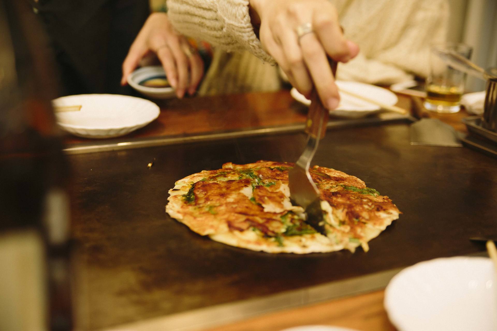 しそ焼きがおいしい。驚いた。この日の昼ごはんに14時ぐらいに行きつけの韓国料理屋さんでスンドゥブを食べてしまったので、お腹はあまり空いてなかった。「食べられなかったらどうしようどうしよう」と、道中話をしていたのだが、問題なく、お腹にするすると入っていくうまさ。他にも『白菜の漬物』と『トマトチーズ焼』そして、『どて焼きそば』も注文。笑いながら食べると、どんどんお腹が空いていく。らしい。