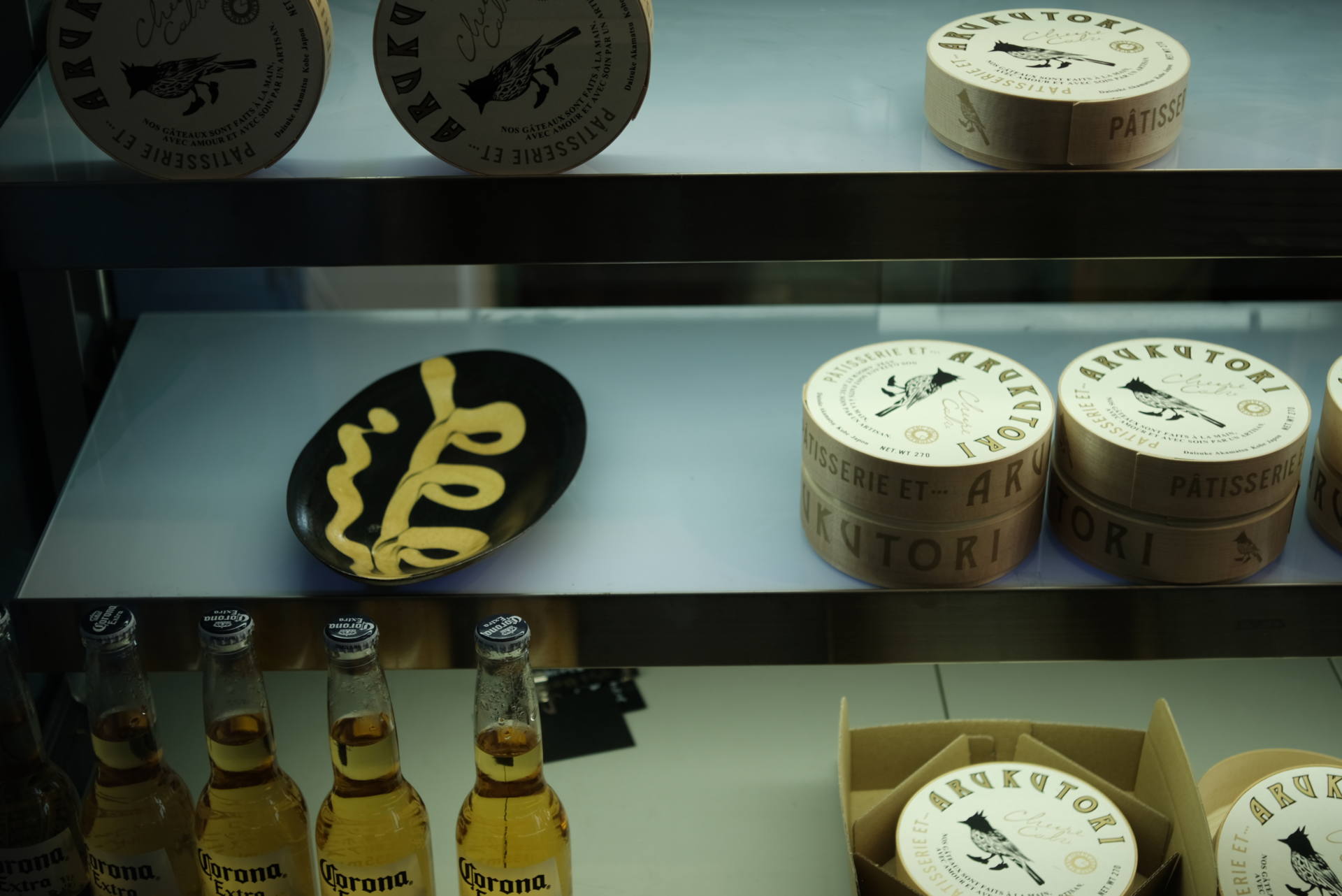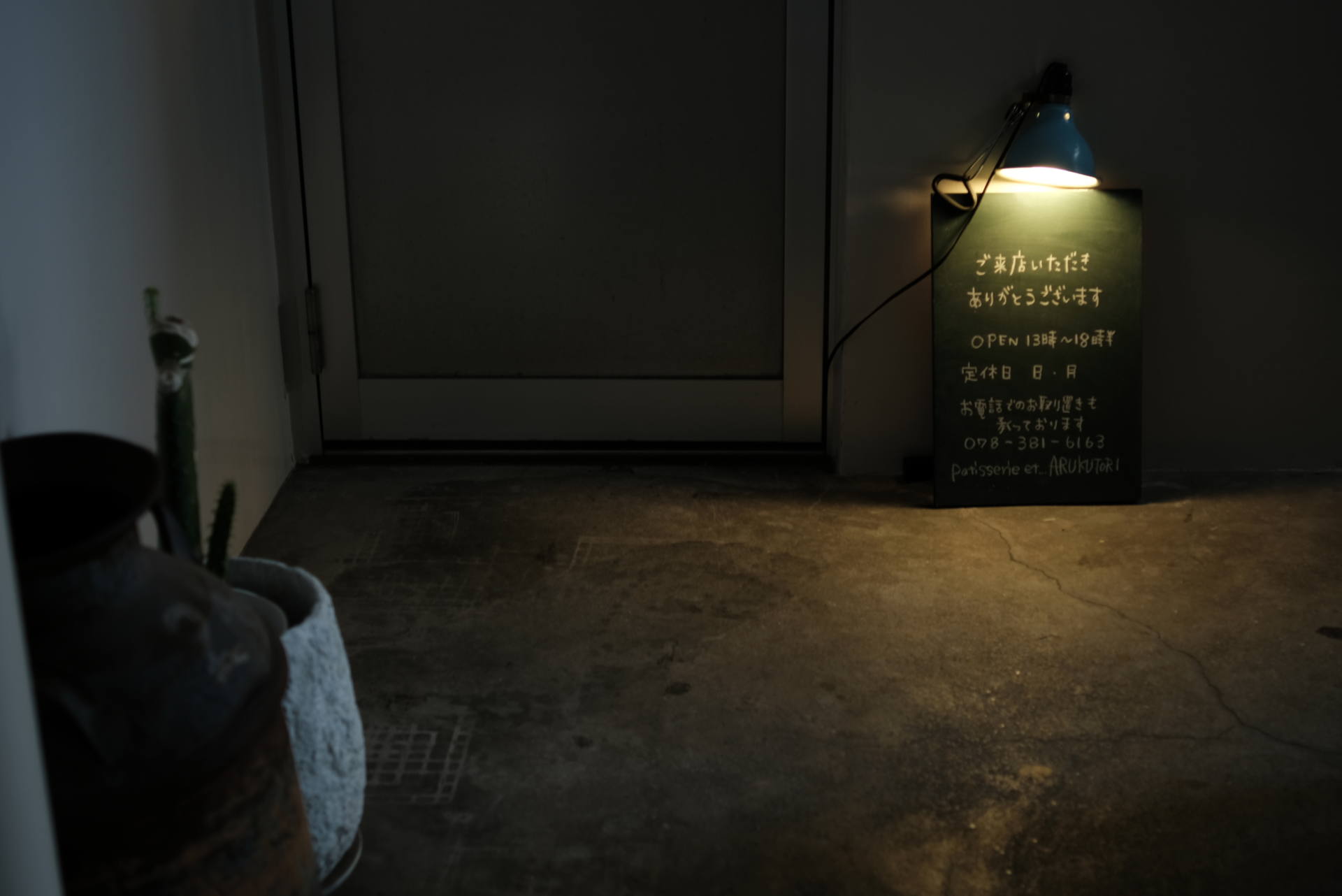 「今夜、シタマチで」と言いながら、ばりばり昼間なのでおやつとしましょう。まずは知人に教えてもらった「PATISSERIE ET…ARUKUTORI」さんへ。お店は昭和初期、兵庫商人の社交場として建てられた岡方倶楽部のほど近く。ビルの2階に構えています。入った瞬間目に飛び込んでくるのは、黄と青の壁、ボブ・マーリーの本、長い髪をひとつにまとめたお兄さん。めちゃくちゃオシャレだぜ・・・とドキドキ。