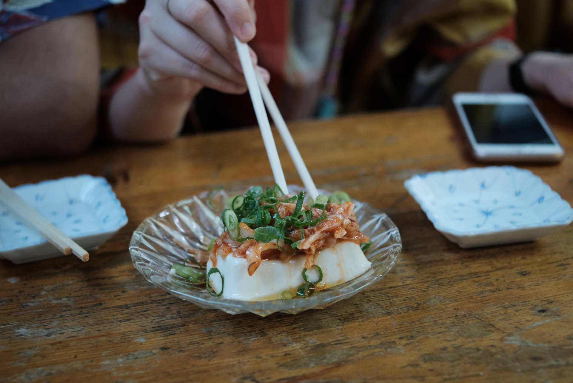 西出町の住宅街をウロウロしていたら見つけた「朝めし」と書いた提灯。吸い込まれるように入店した「一寸亭」さん。暖簾をくぐると常連さんとおもしき男性とお母さんが談笑中。「写真撮ってもいいよー、わたしの写真は撮らないでー!」ととても気さくなお母さん。とりあえず生ビールでカンパイ。アテはキムチ豆腐と、アジフライ。野菜も一緒に盛り付けてくれました。ありがとう!