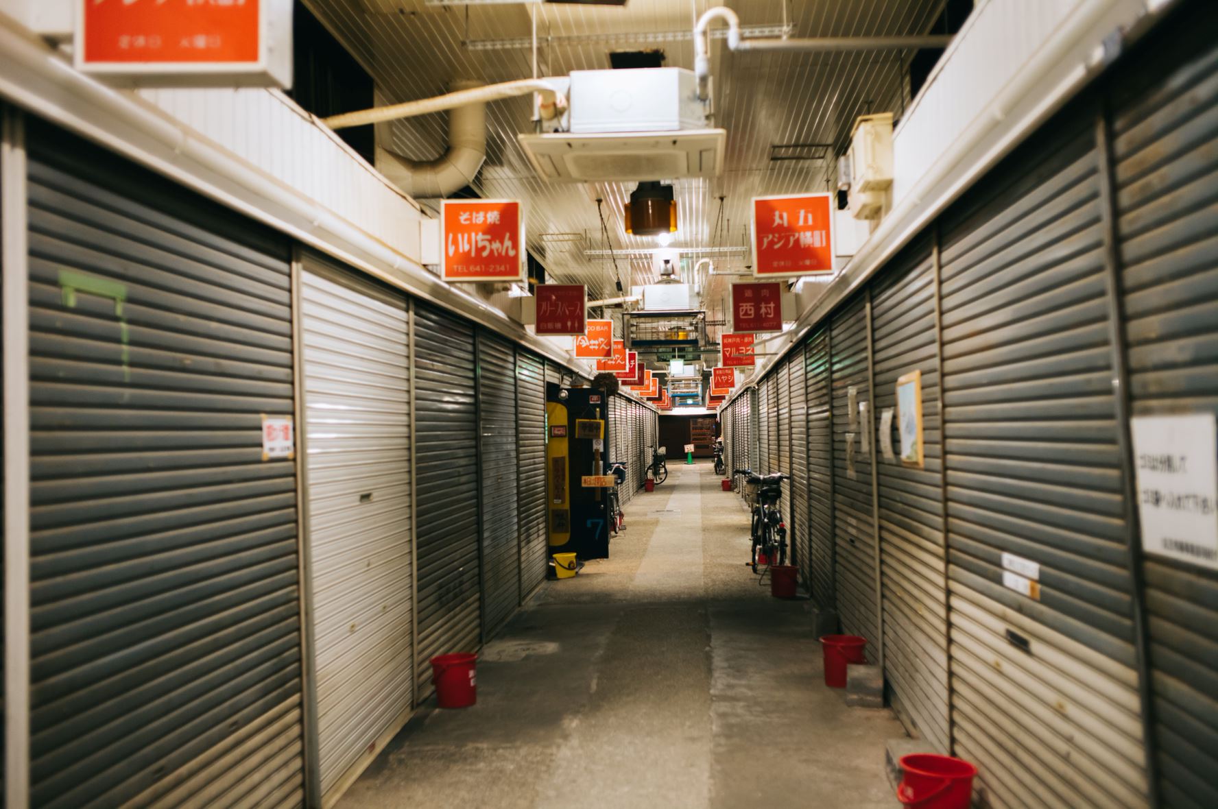 この日は、私たちが滞在していた長田区・真野地区の「シリイケバレー」で、写真家の岩本順平さんと18:30に合流する。前面がガラス張りのシリイケバレーは、伝説の廃屋芸人建築事務所・西村組が手がけた空間で、静かな住宅街のなかで一際目立つ。