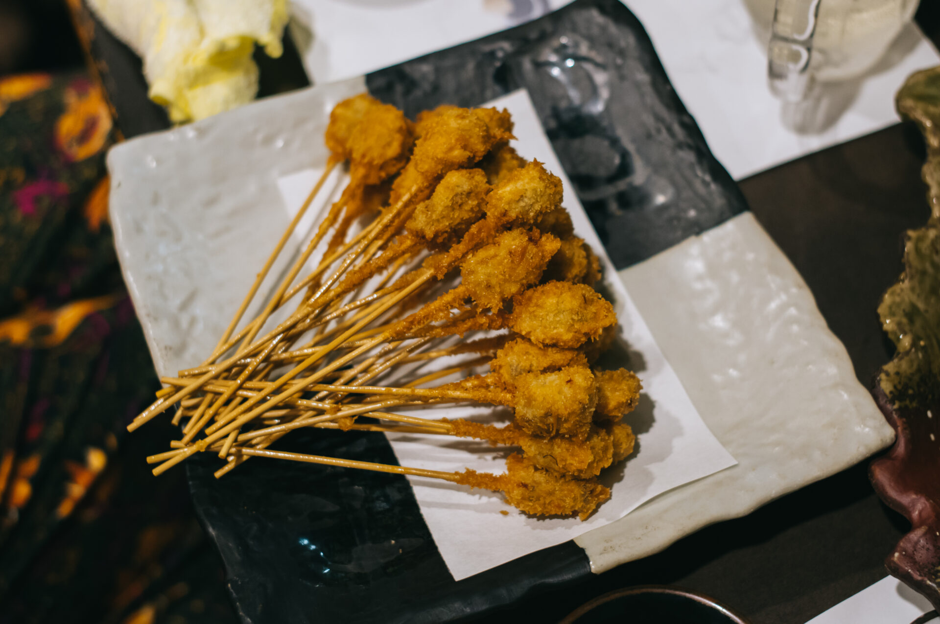 よじまは、これまた美味しい。会話もそこそこに、海鮮サラダや串カツをひたすら食べる。