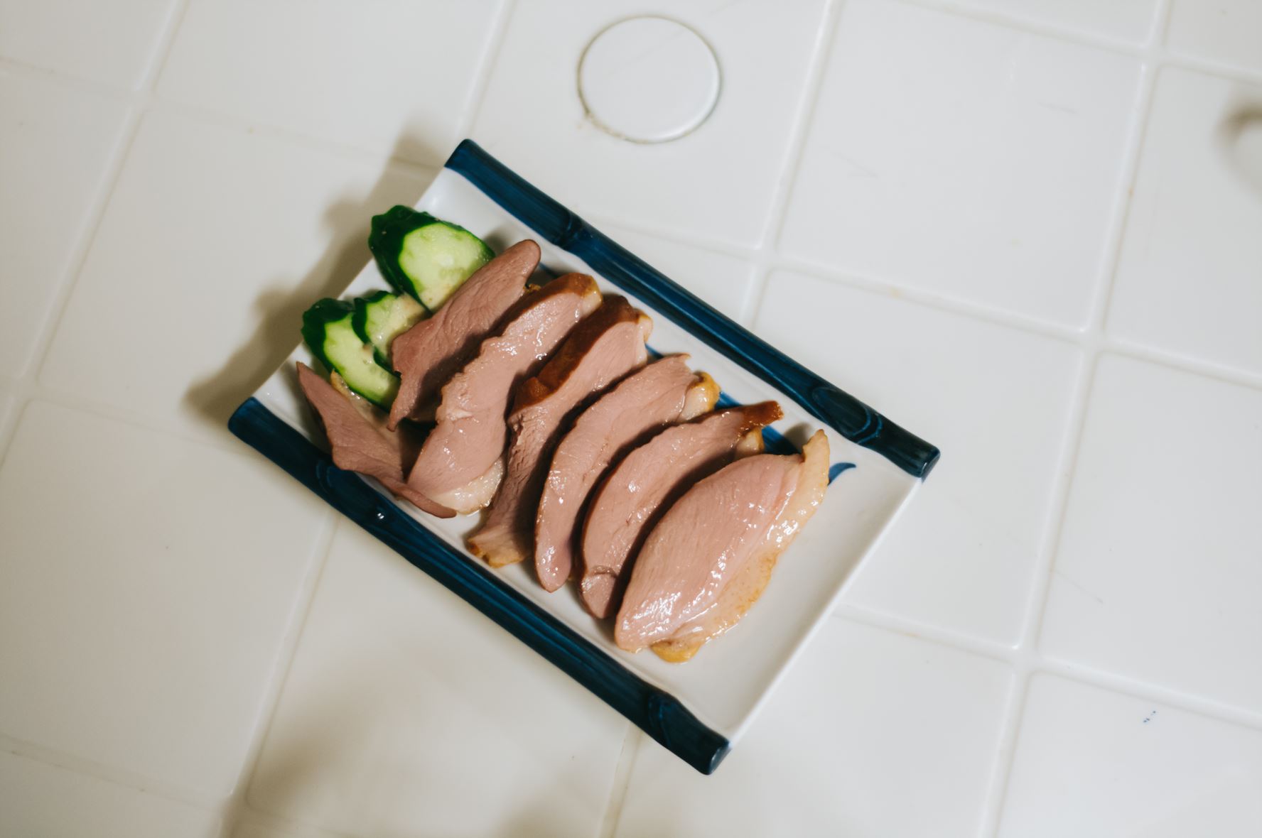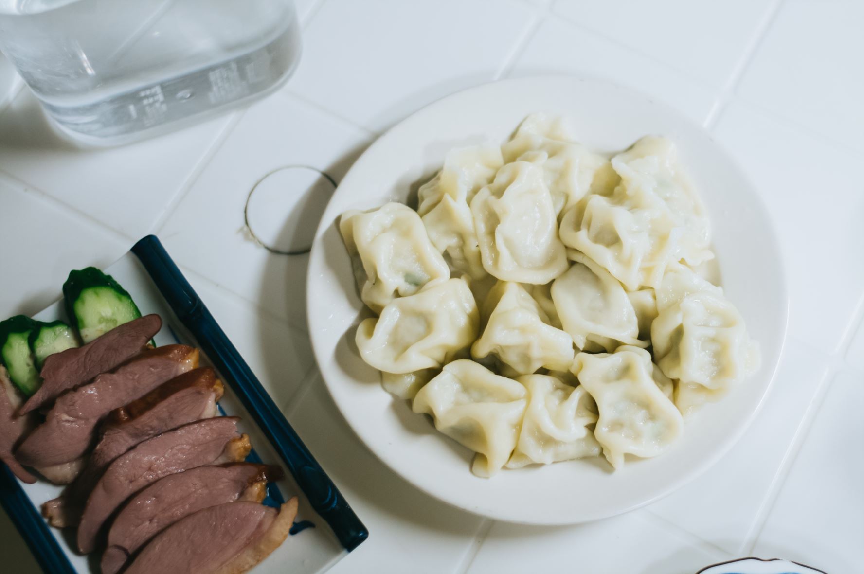 流石に疲れ気味の私たち。でも、安定のカモハムと水餃子がテーブルにやってきたら、げんきんなことにエネルギーを取り戻す。